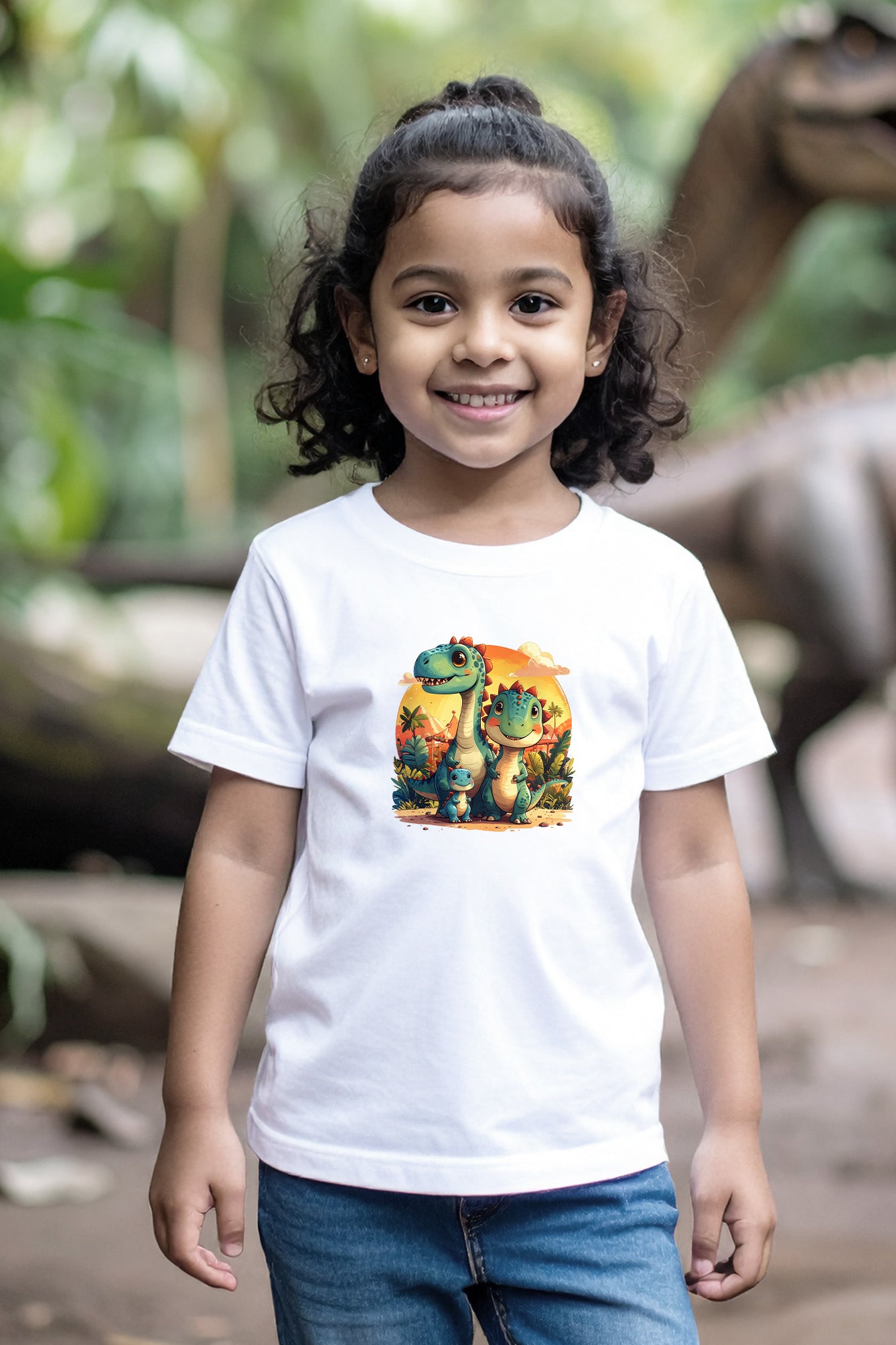 Featuring a cute dinosaur family enjoying a carnival, this playful print adds a touch of joy and imagination to her wardrobe. Built with fade-proof printing, the colors stay as bright as her smile.